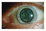 - Catarata cristalina: formada por múltiples manchas pequeñas que, cuando la luz se refleja, da el aspecto de cristales coloreados en la corteza.