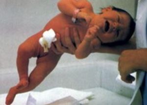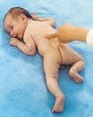 Esta prueba no es agradable para el bebé, pero es necesaria: El médico retira la mano colocada en la espalda y el bebé cae hacia atrás. Del susto el pequeño abre ambos brazos