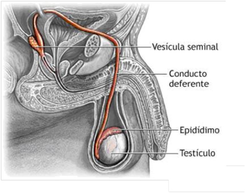 Los espermatozoides salen del epidídimo a través de los conductos deferentes.