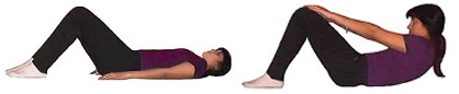 2.En posición acostada con las rodillas flexionadas, trata de tocar con tus dedos las rodillas y mantenerte en esta posición todo el tiempo que puedas.