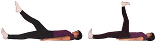 Inspira antes de levantar cada pierna y espira al llegar con la pierna a la posición vertical. Repítelo 10 veces con cada pierna. En la misma posición con las rodillas flexionadas intenta de tocar con tu mano derecha tu rodilla izquierda y viceversa.