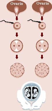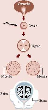 El segundo cuando 2 ó más óvulos son fecundados por 2 ó más espermatozoides creando huevos diferentes (bicigóticos).