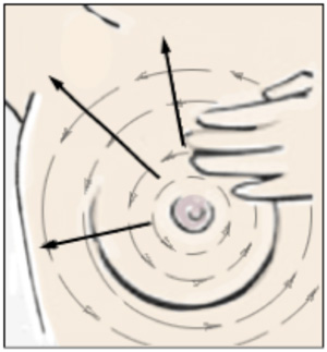 En la exploración el médico mirará si las mamas son iguales, si hay alteraciones en la piel, en el pezón, en la areola, si hay secreción por los pezones, si se tocan bultos y sus características. Para realizar este examen el médico mueve los dedos alrededor del seno siguiendo siempre un patrón circular.