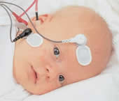 La prueba de audición más común para bebés de menos de seis meses de vida es la prueba de respuesta evocada del tallo cerebral. Es similar a la PEATC automatizada, pero proporciona más información y debe ser realizada por un especialista con experiencia en niños pequeños.