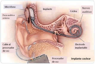 Implante de cóclea: En caso de que la estimulación proporcionada por unos audífonos no sea suficiente para adquirir lenguaje, la técnica actual ofrece una posibilidad más que hasta hace pocos años no existía mediante otro tipo de ayudas auditivas llamadas “Implante coclear”, el cual se diferencia de otros en que se implanta mediante cirugía. El implante de cóclea se realiza en niños mayores de 12 meses con defectos concretos.